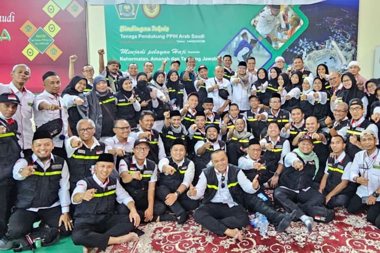 JEDDAH – Ketua PPIH Arab Saudi, Subhan Cholid melepas kepulangan tim Media Center Haji (MCH) 2023, Kamis (20/7/2023). Apresiasi tinggi diberikan Petugas Penyelenggara Ibadah Haji (PPIH) Arab Saudi 1444 H/2023 M kepada Tim Media Center Haji (MCH).
