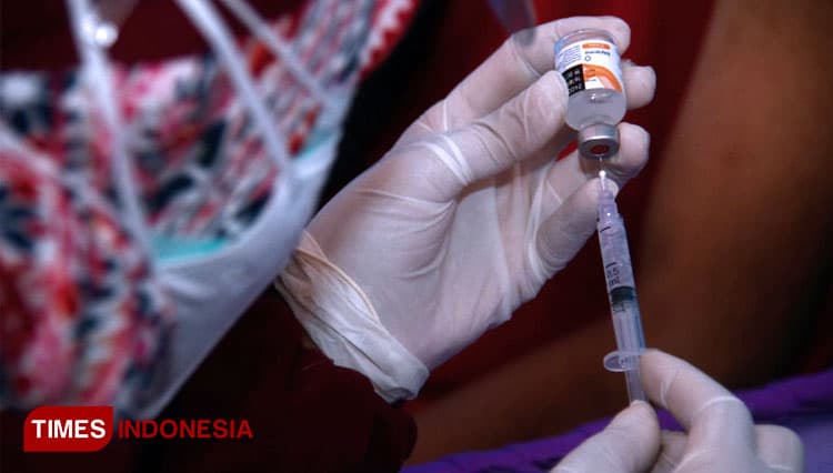 TIMES Cianjur/Salah satu tenaga kesehatan saat mengisi dosis vaksin untuk disuntikkan. (FOTO: Adhitya Hendra/TIMES Indonesia)