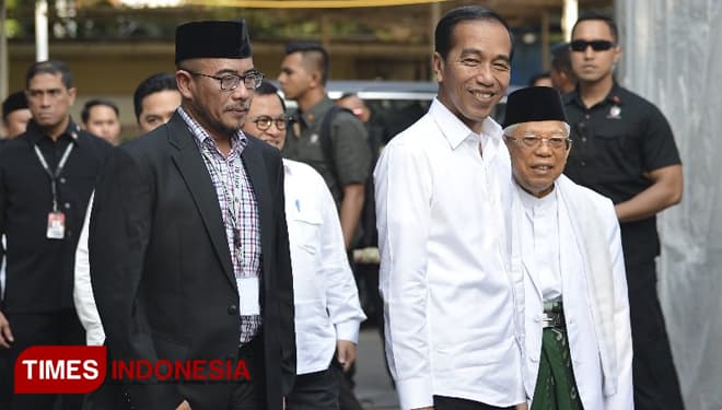 TIMES Cianjur/Presiden terpilih, Jokowi, saat tiba di Gedung KPU RI, Minggu (30/06/2019). (FOTO: Hasbullah/TIMES Indonesia).